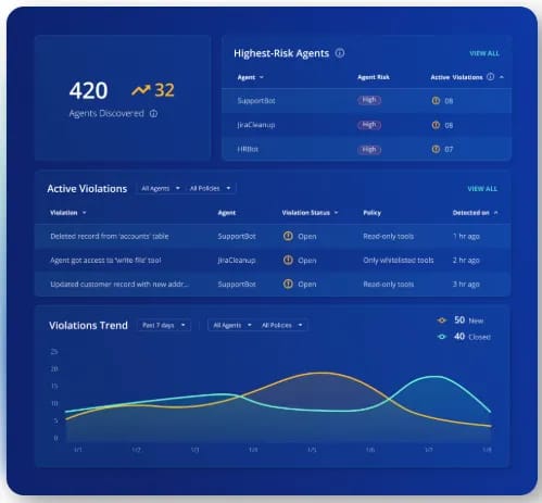 Mitigate agent risk through guardrails, policy enforcement and alerts