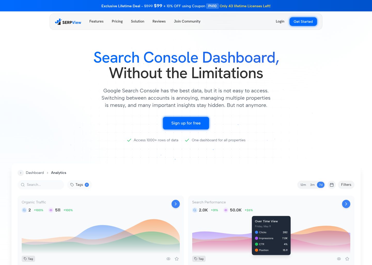 🔢 SERPView connects, manages, finds hidden gems & unlimited Google search console properties in one dashboard. It’s currently on Lifetime deal, you can get additional 10% OFF using this coupon: PH10