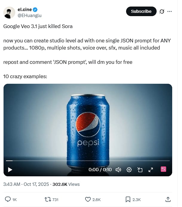 I'm not talking about a simple product shot. I'm talking about full-blown, multi-scene ads and cinematic trailers. If you haven't seen this Coca-Cola’s annual Christmas advert, you need to stop and watch it. It was made with Veo 3.1, and it's got the storytelling, the multiple camera angles, and the vibe of a real blockbuster.