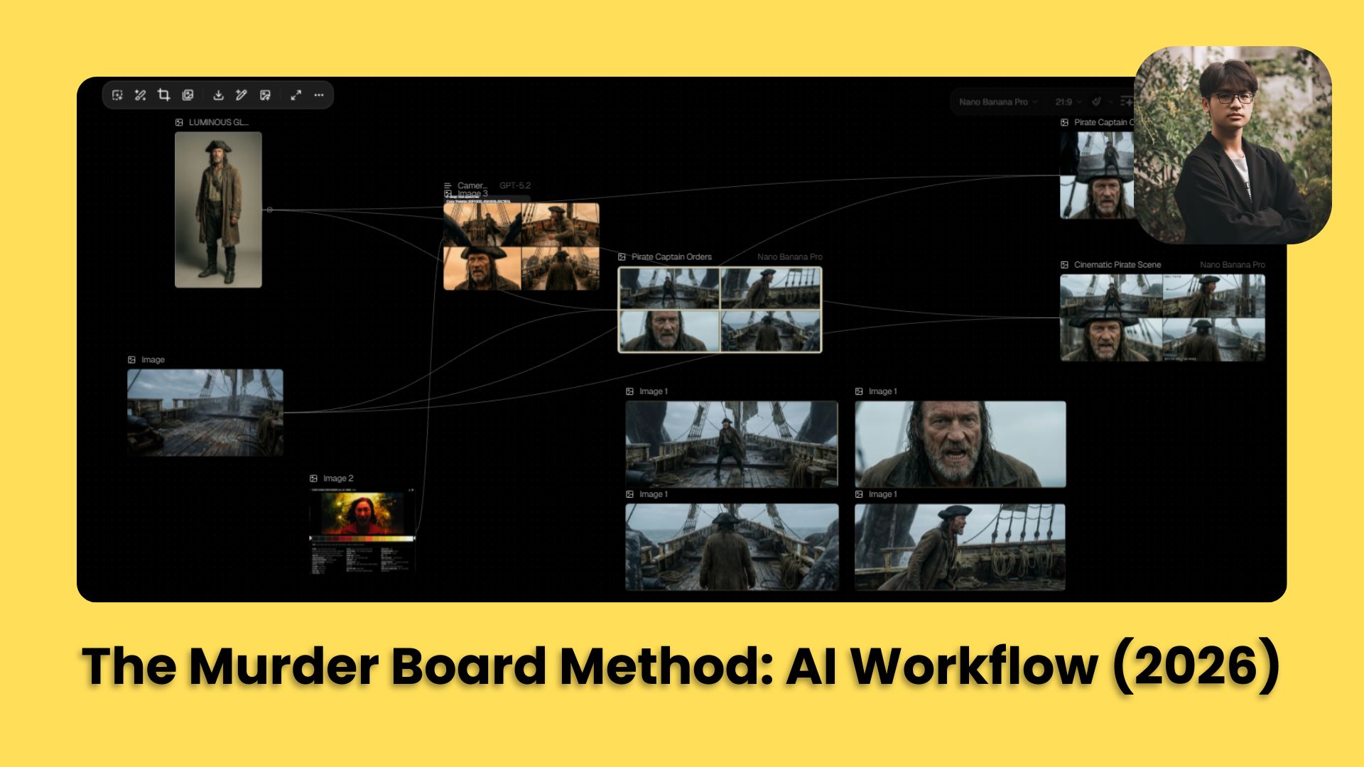 The "Murder Board Method" is one of the most reliable workflows for cinematic AI video in 2026, moving away from the "prompt lottery" toward a structured visual pipeline. By combining Nano Banana Pro (for ultra-high-resolution 21:9 base frames), Kling 2.6 (for fluid, character-consistent motion) and real Hollywood metadata from ShotDeck, you can achieve professional film-grade outputs.
